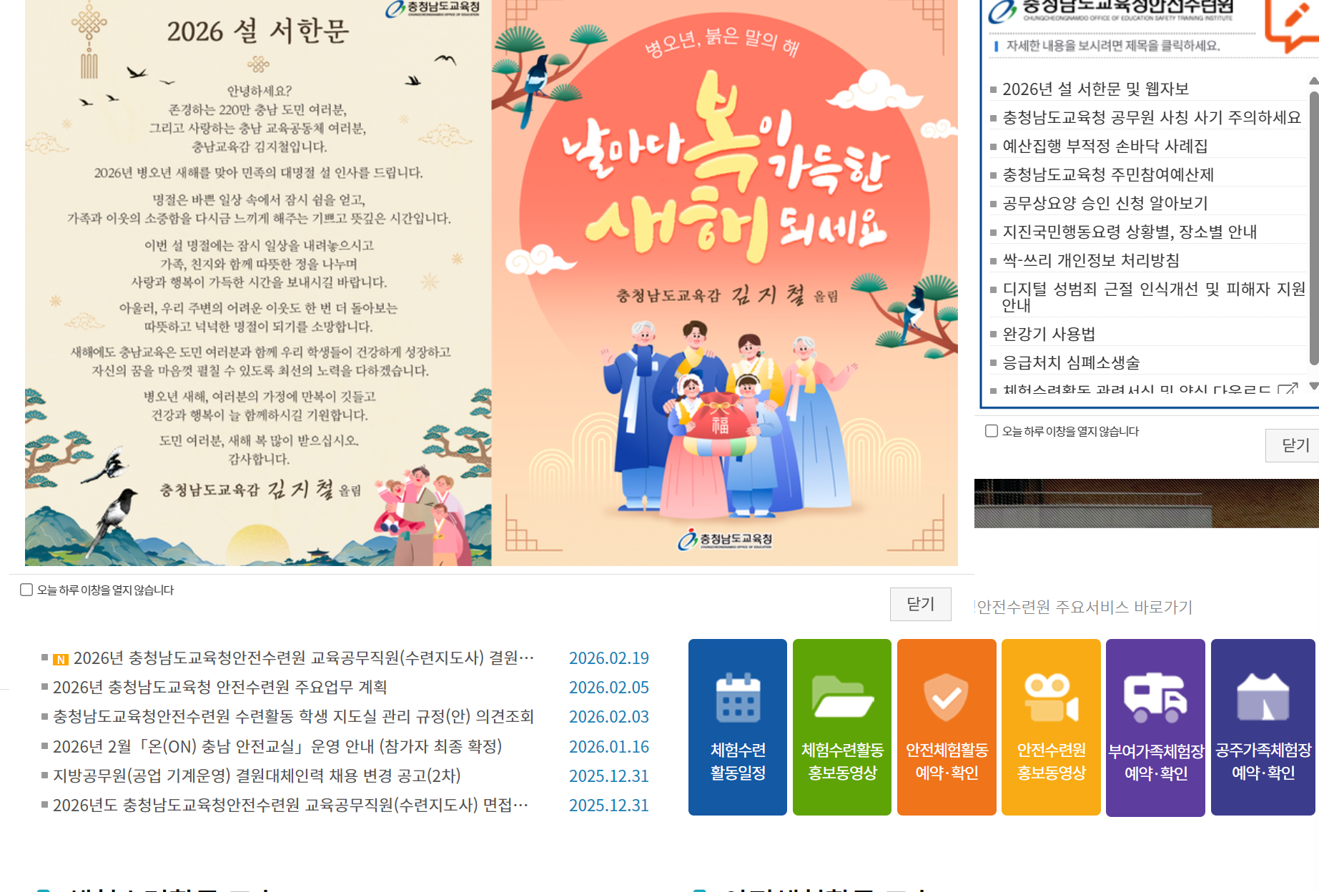충청남도교육청안전수련원 홈페이지