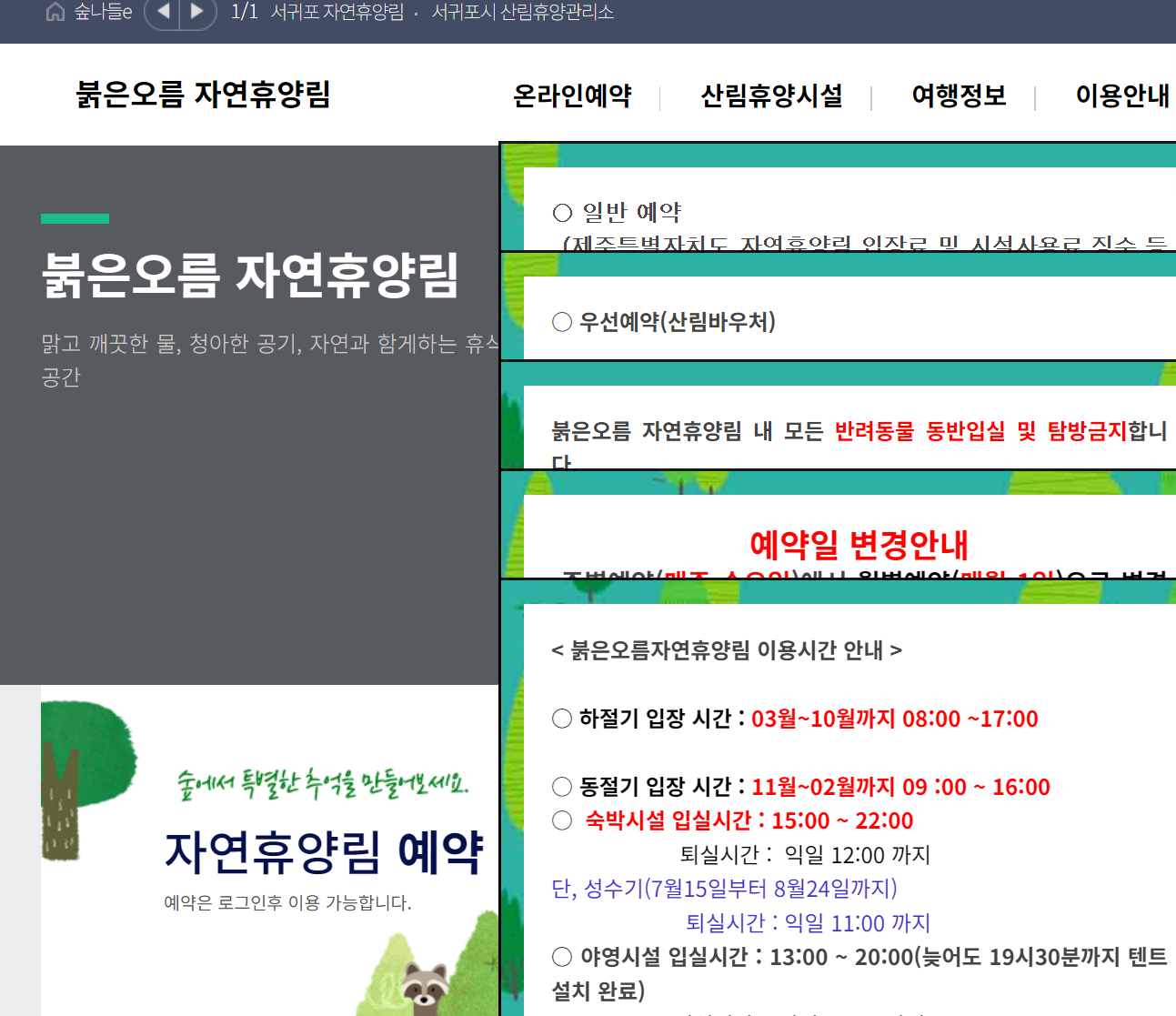 붉은오름 자연휴양림 홈페이지 바로가기 정보입니다.