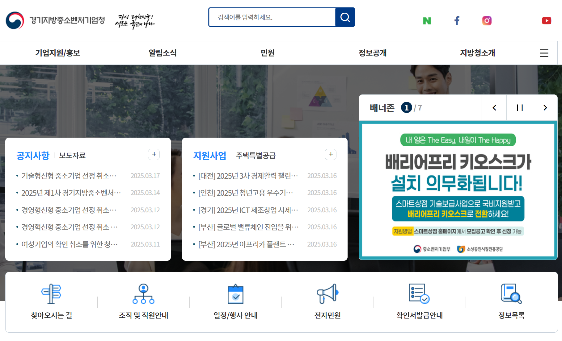 경기지방 중소벤처기업청 홈페이지 바로가기 정보입니다.