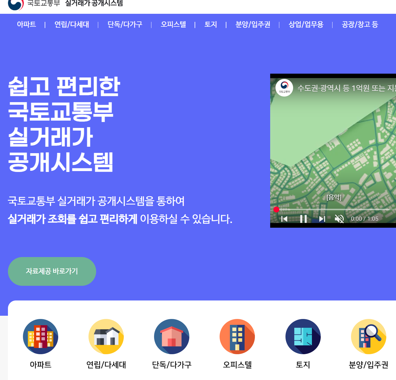 국토부 아파트 실거래가 조회 홈페이지 바로가기 정보입니다.