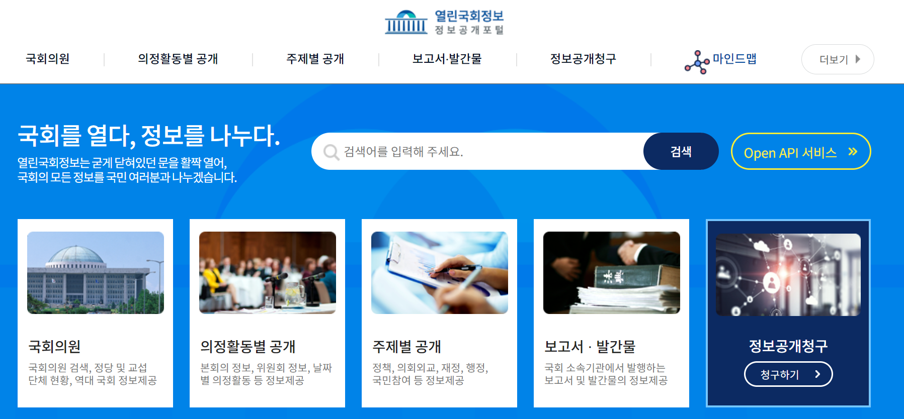 열린국회정보 정보공개포털 홈페이지 바로가기 정보입니다.