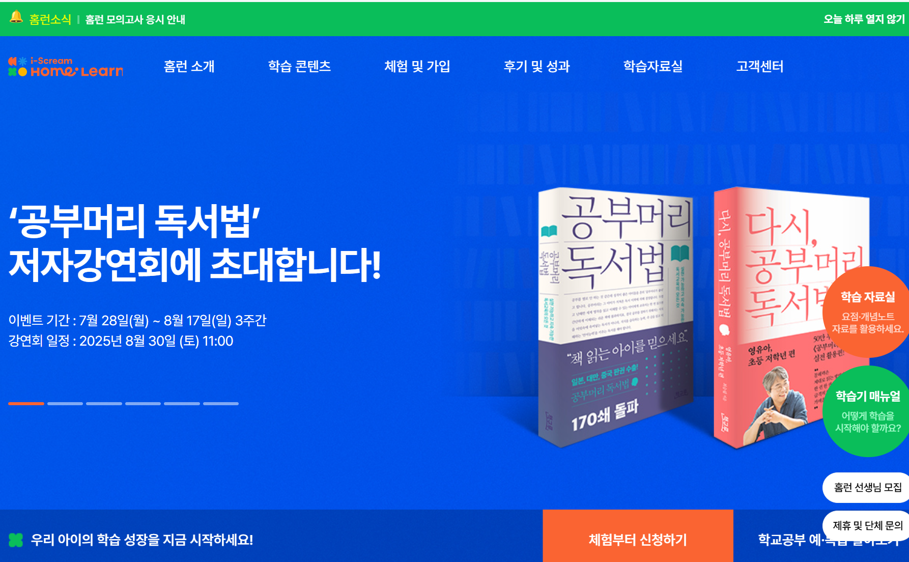 스스로 공부하는 힘을 기르는 스마트 홈스쿨링, 아이스크림 홈런 공식 홈페이지입니다. 초등・중등 맞춤 학습으로 자기주도적 학습 습관을 길러주세요.