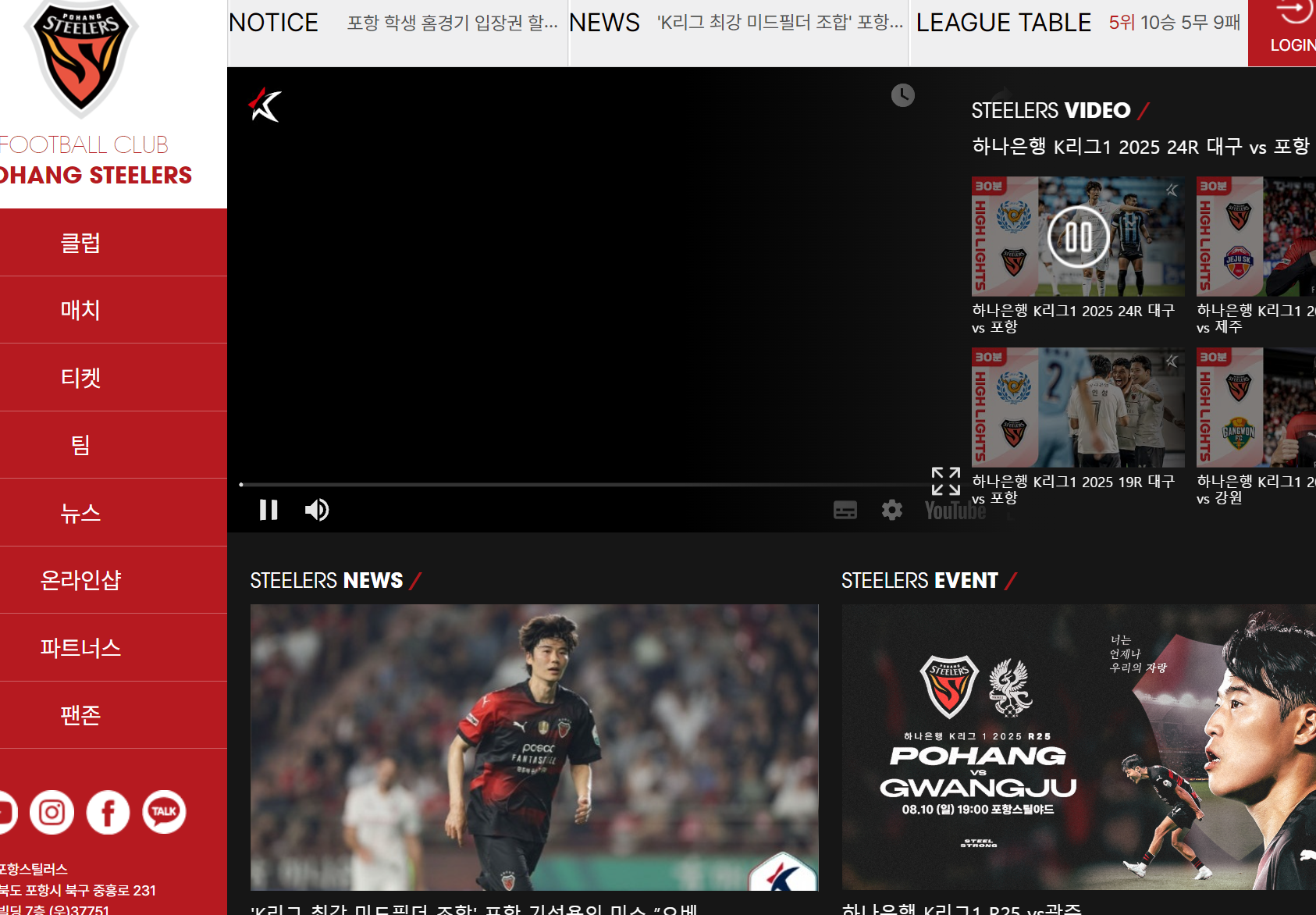 확대보기 STEELERS VIDEO / 하나은행 K리그1 2025 24R 대구 vs 포항 하나은행 K리그1 2025 20R 포항 vs 제주 하나은행 K리그1 2025 19R 대구 vs 포항 하나은행 K리그1 2025 17R 포항 vs 강원