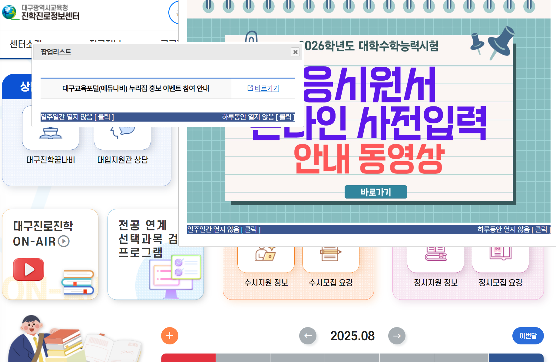 대구시 교육청 진학진로정보센터 홈페이지 바로가기 정보입니다.