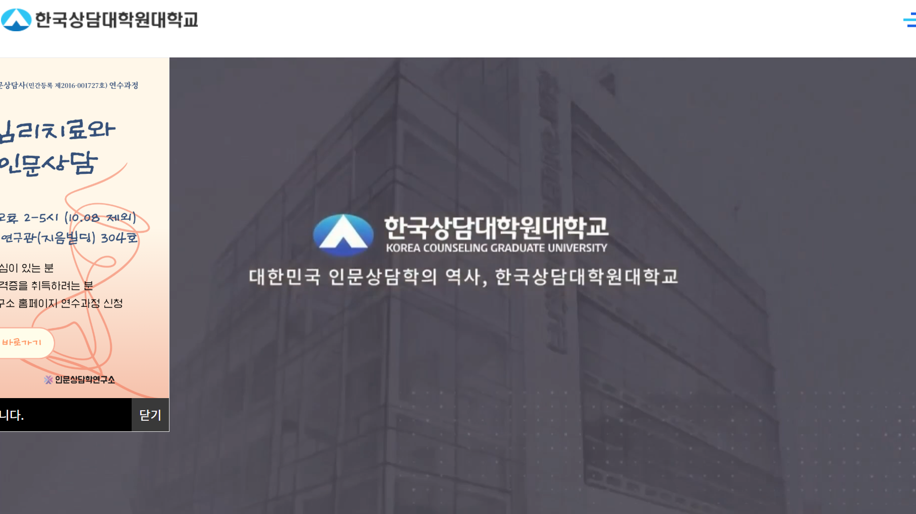 한국상담대학원 대학교 홈페이지 바로가기 정보입니다.