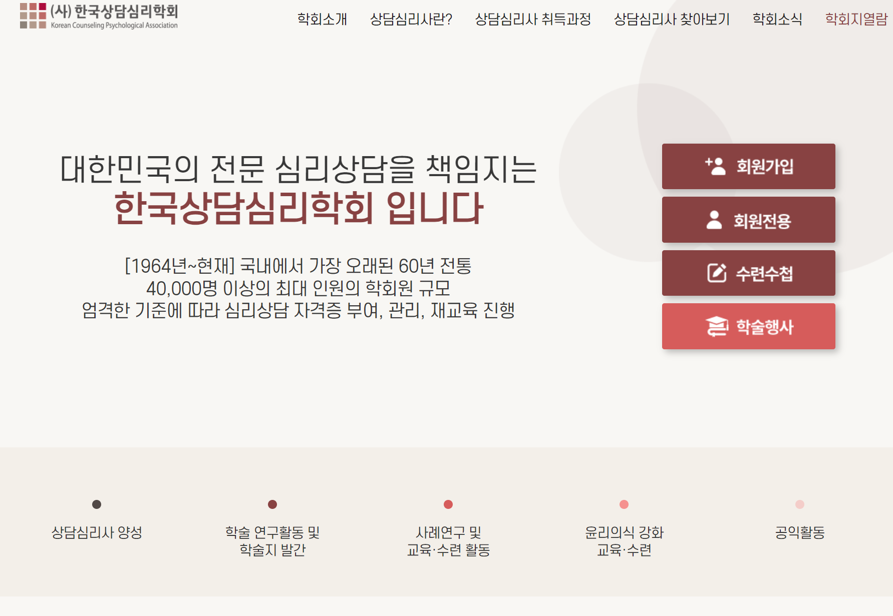 한국상담심리학회 홈페이지 바로가기 정보입니다.