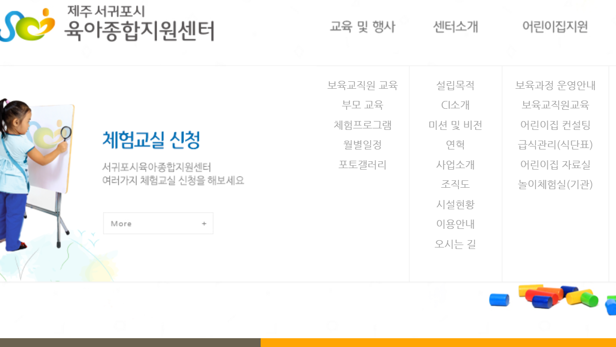서귀포시 육아종합지원센터 홈페이지