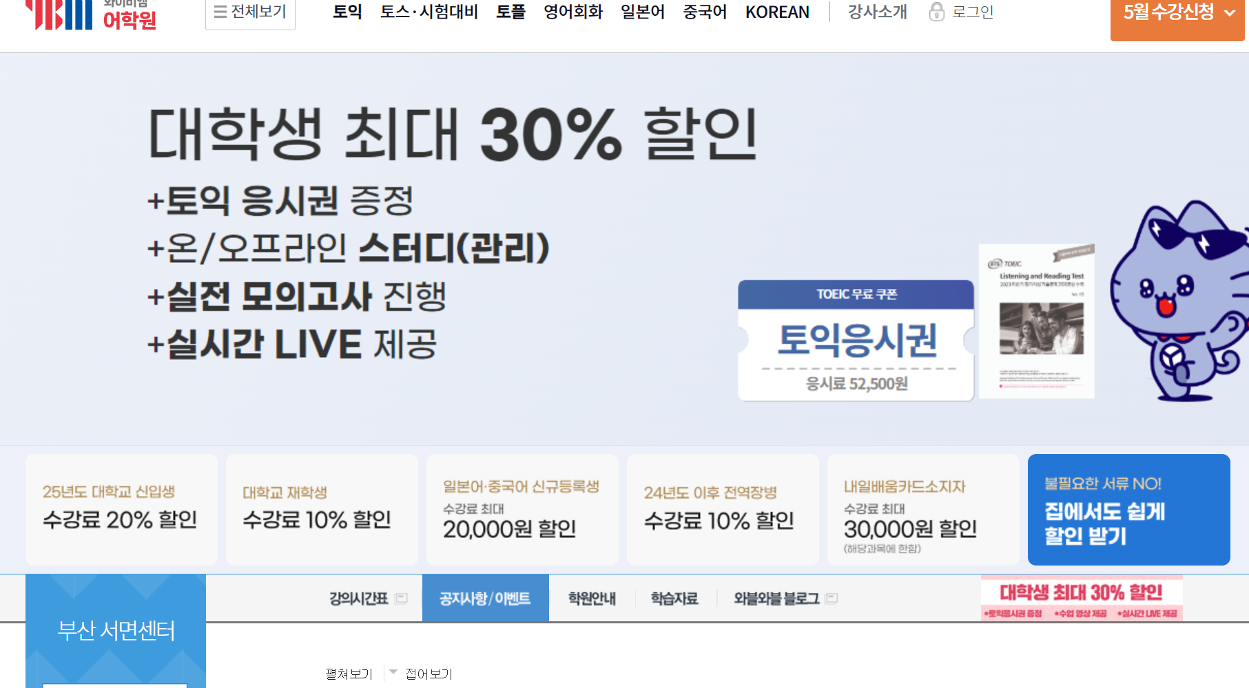 서면 ybm어학원 홈페이지 바로가기 정보입니다.