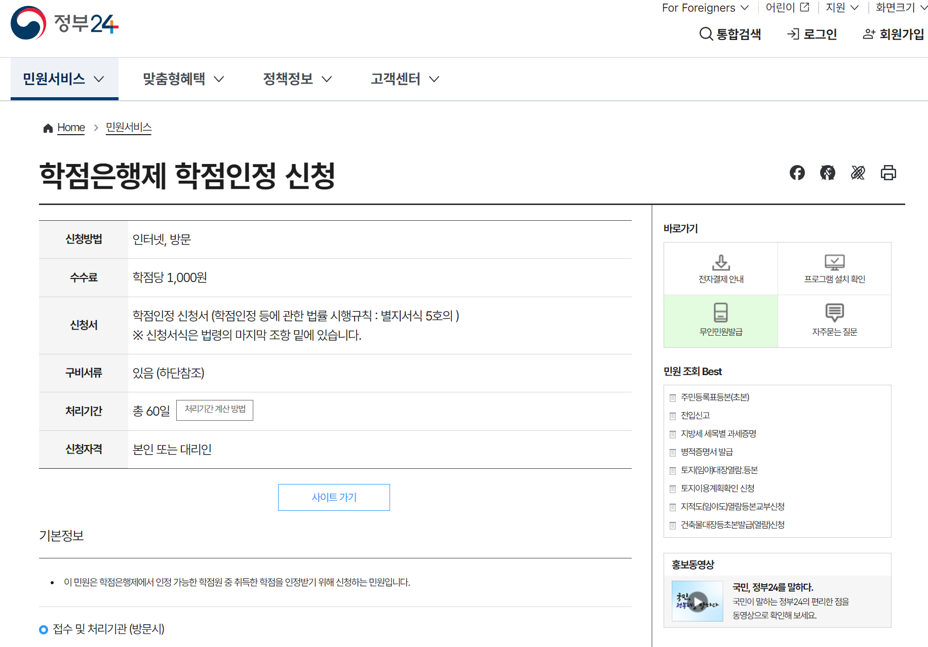 학점은행제 학점인정 신청 | 민원안내 및 신청 |정부24