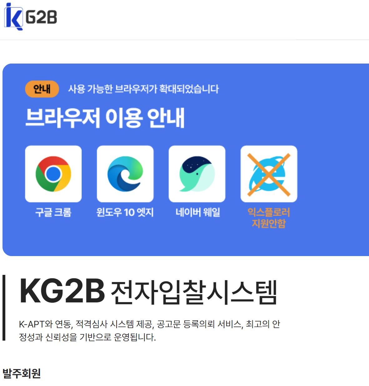 kg2b 전자입찰 홈페이지 바로가기 정보입니다.